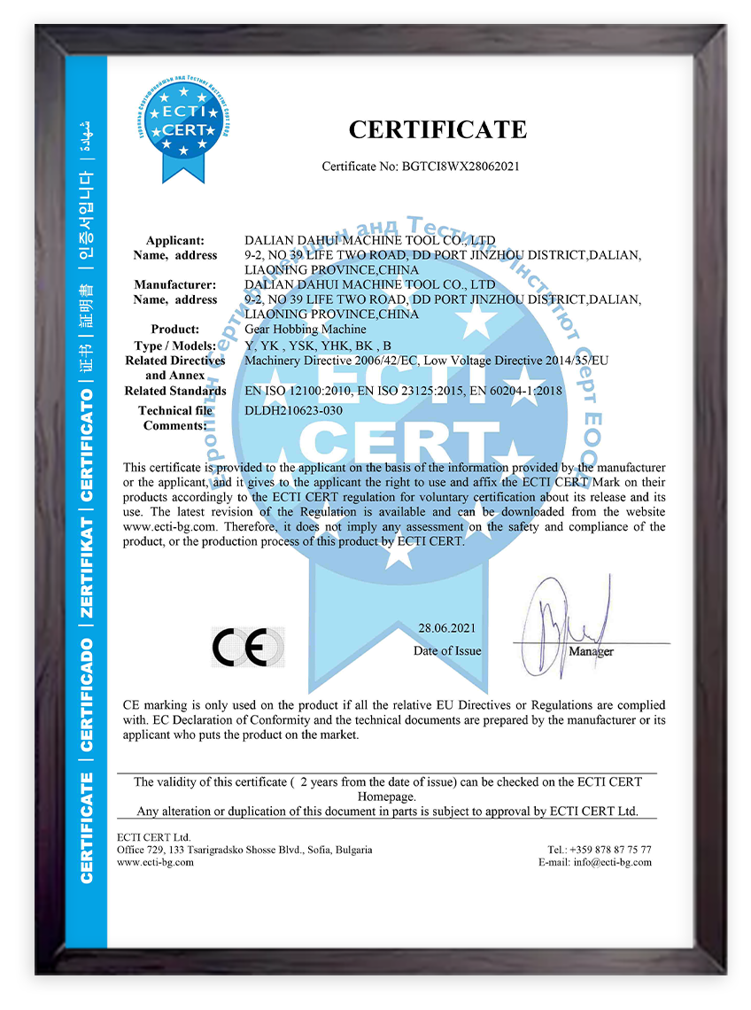 Компания Dalian Dahui Machinery Equipment Co., Ltd. была основана в 2007 году и занимается стандартными и нестандартными машинами и оборудованием; сверлами, метчиками, фрезами и другими металлорежущими инструментами. 2011 год сертификация CE, сертификация BV, сертификация SGS. Наш собственный бренд "DAHUIMT" имеет более десяти патентов.